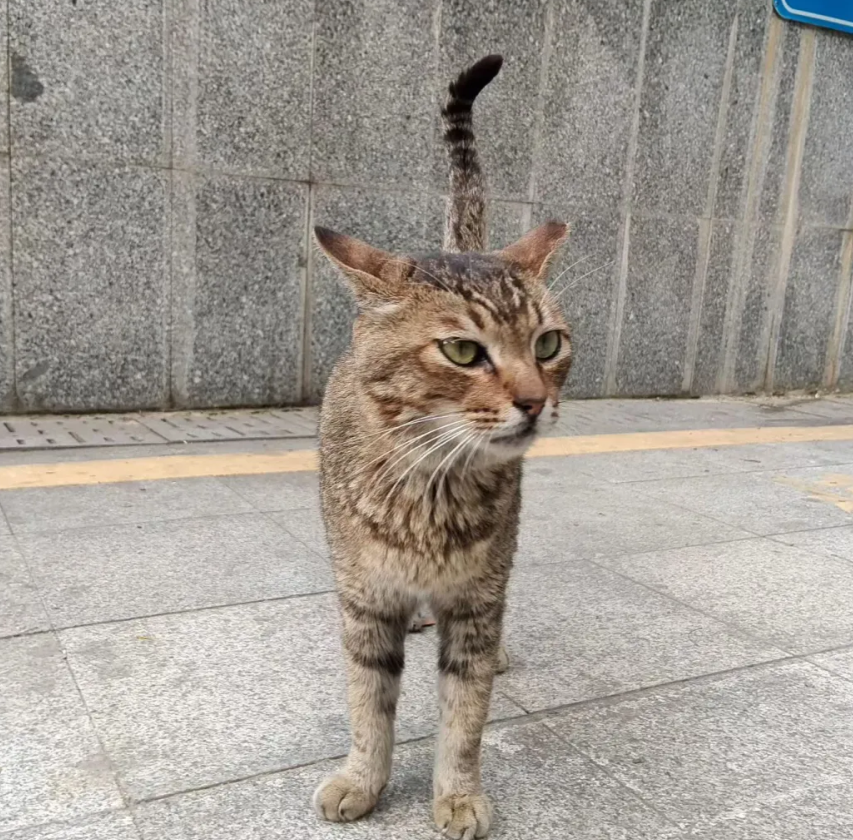 在深圳的一个地铁站出口,长期住着一只流浪猫,在附近一住就是好几年。经常从这个地铁站出口出去的人时不时就会碰到它。