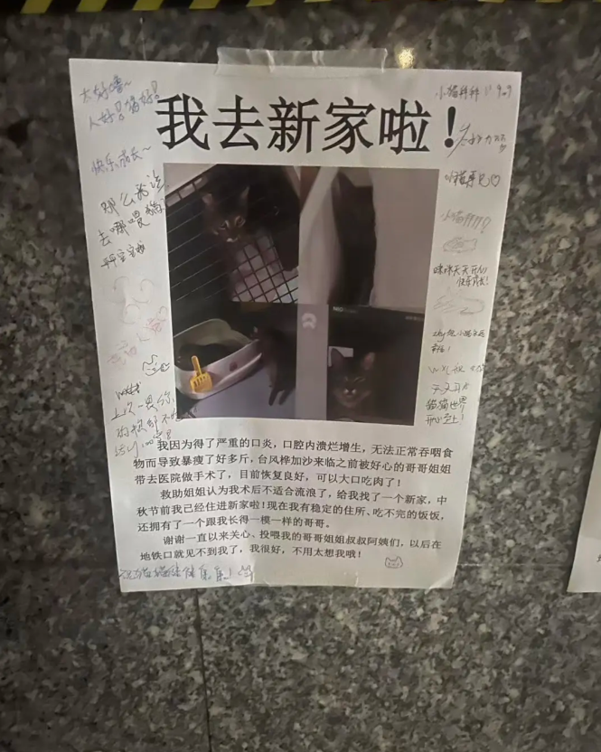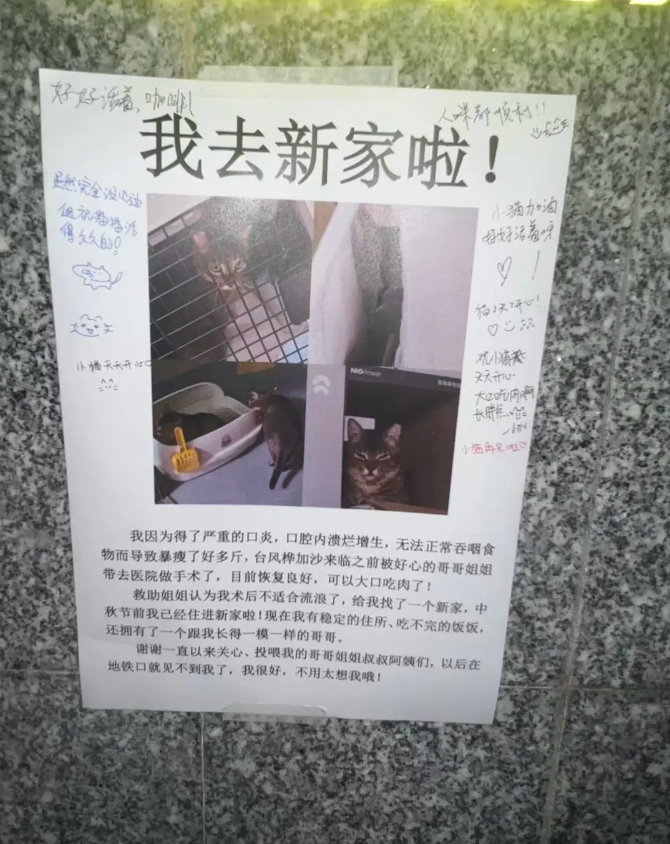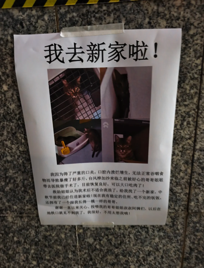 一看开头的大字就放心了,虽然每天经过地铁站时都会想猫,但很为它有了新家而开心。