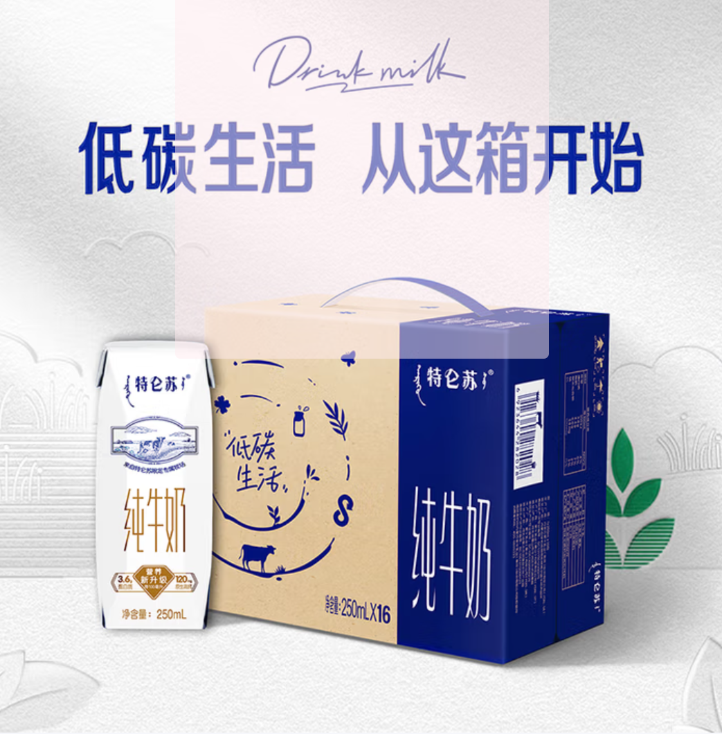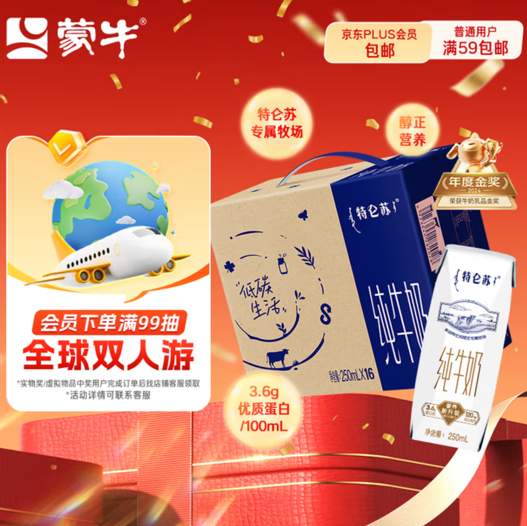 京东商城 蒙牛【新鲜日期】特仑苏纯牛奶250ml*16盒 家庭早餐 送礼盒装