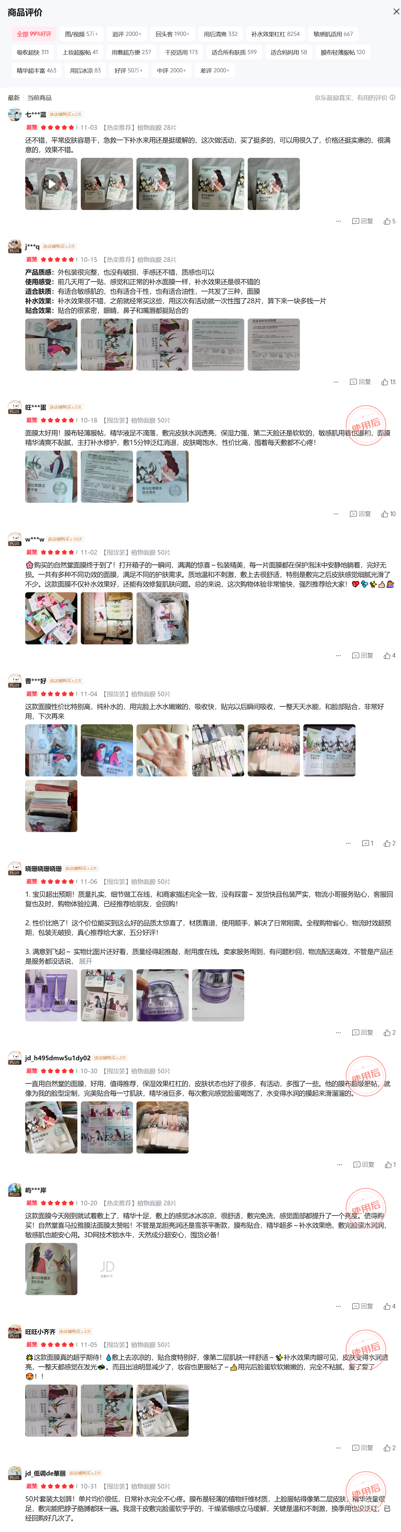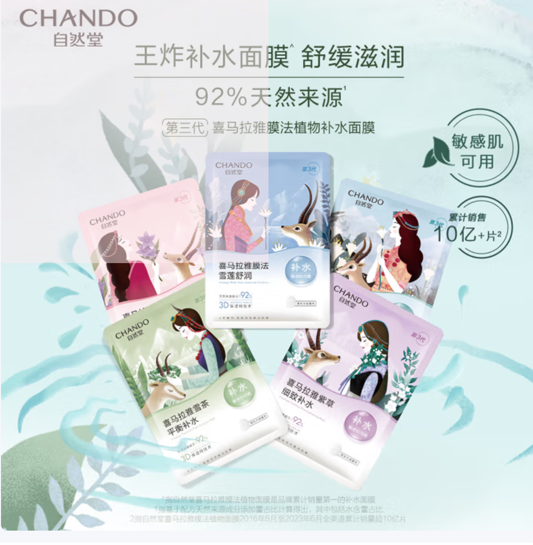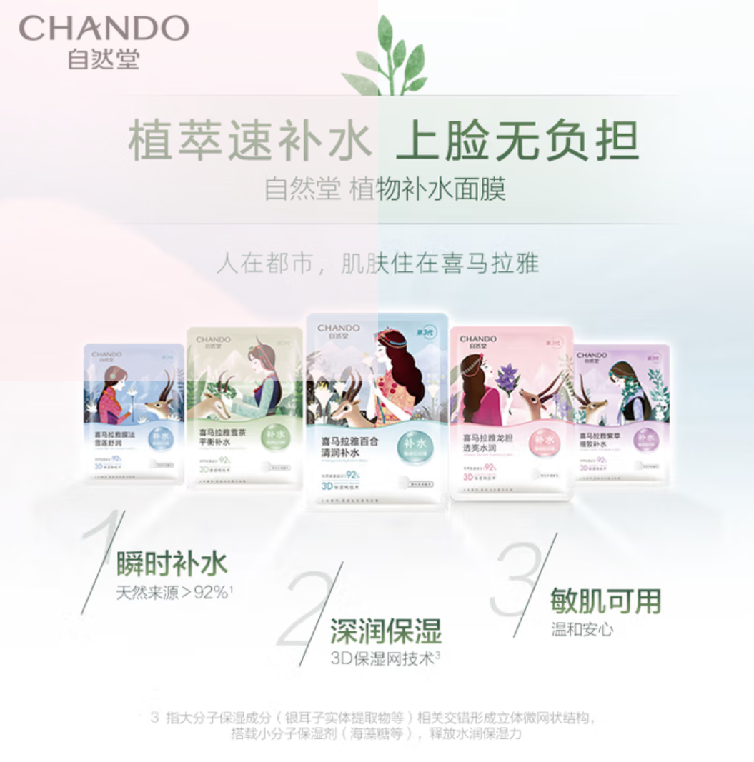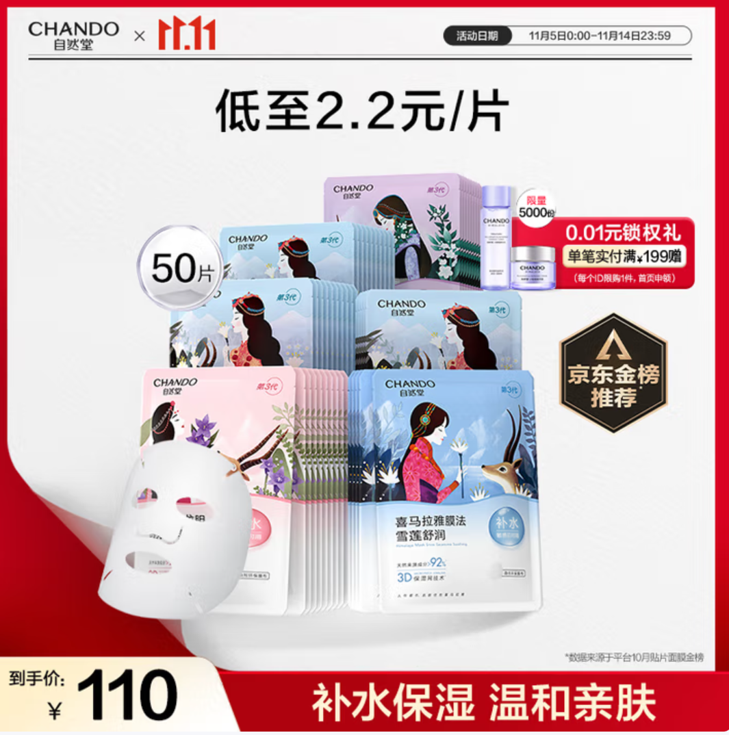 京东商城 自然堂喜马拉雅植物补水面膜50片套装 补水保湿敏肌可用护肤品女