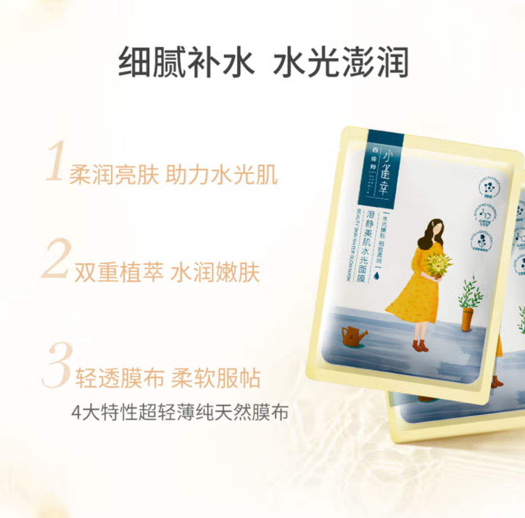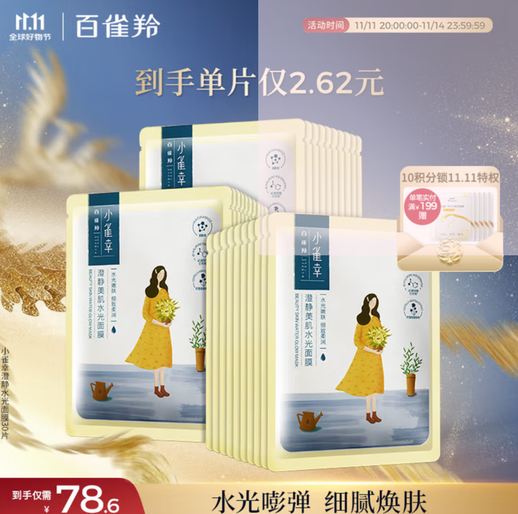 京东商城 百雀羚(PECHOIN)小雀幸澄静美肌水光面膜30片装补水透亮保湿送女友